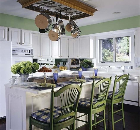 A konyhában általában mindenki „tér hiánnyal” küzd a sok edény, evőeszköz, pohár és stb. miatt. Ha nincs már elegendő hely a szekrényekben, de van egy szinte üres mennyezeted, akaszd fel az edényeket a plafonra! (A kép csak inspiráció!)
