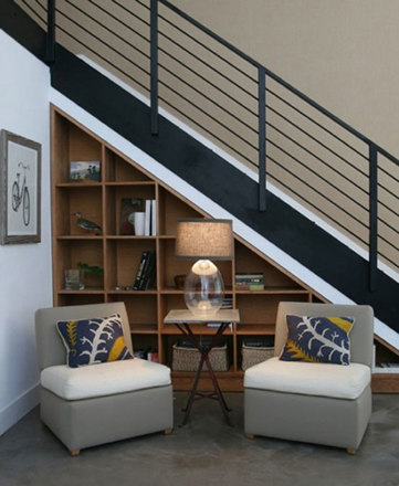 A lépcső alatti helyet (persze csak ha van) sokan nem használják ki, pedig ide is többféle megoldás létezik: szekrényt, polcot, íróasztalt vagy bicikli tárolót is építhetünk alá! (A kép csak inspiráció!)