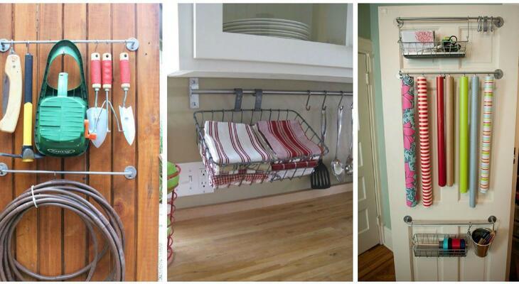 A legtöbben egyáltalán nem használják ki az ajtókat, ha tárolásról van szó, pedig egyszerűen remek megoldás a képen látható ötlet. A különböző eszközeidet, mint a csomagolópapír, rendezetten tárolhatod a törölközőtarók segítségével.
