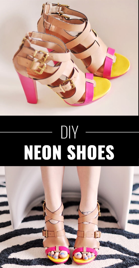 Fényes, neon színű körömlakkok segítségével felfrissítheted a régi cipőidet, ezzel pedig extra megjelenést kölcsönözhetsz számukra.
