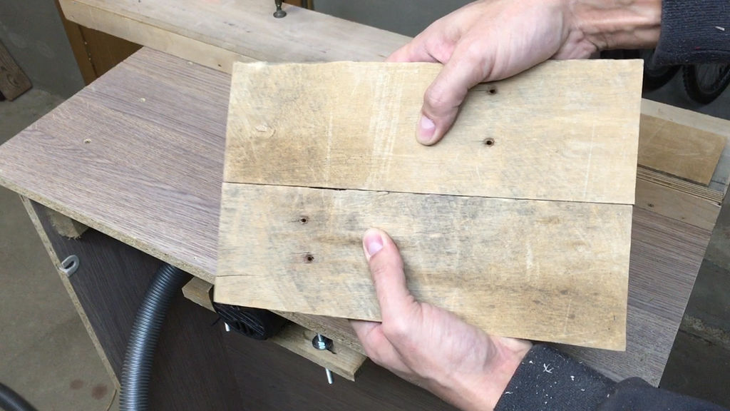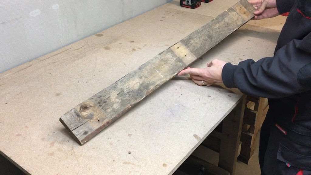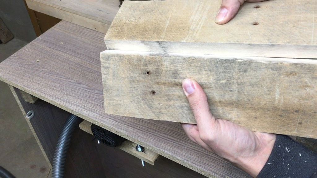 Hogy a faragasztó jobban összefogja a deszkákat, el kell távolítanod a külső durva réteget azok hosszabb oldalairól, hogy egy sima, tiszta felületet kapj. Ezt megteheted egy asztali körfűrész, vagy egy csiszológép segítségével is, de vigyázz, hogy ne vágj le túl sokat a deszkák oldalairól. Nagyjából egy milliméter elég kell legyen ehhez. Ez a lépés különösen fontos, ha például raklapdeszkákat használsz.