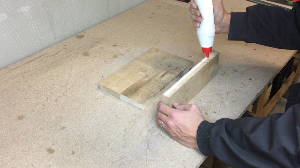 Jöhet a ragasztás. Ügyelj rá, hogy ne kend be a deszkák oldalait teljesen, nehogy az összeillesztéskor elöl kipasszírozódjon a ragasztó. Csak arra az oldalra kerüljön belőle, ami a fal felé néz majd, mert ott úgysem fog látszódni.