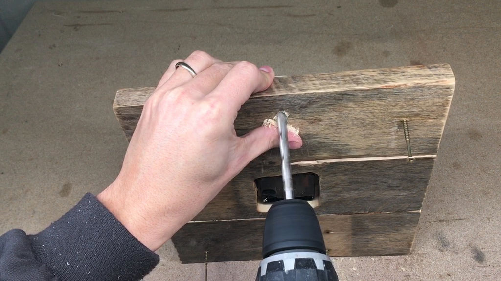 Miután a ragasztó megszáradt, távolítsd el a sablont, és szereld fel az óra mutatóit. Ezek után nincs más dolgod, mint felcsavarozni egy akasztót az óra hátuljára, behelyezni az elemet, és beállítani az időt. Ne felejtsd el eltávolítani a csavarokat, ha azokkal emelted meg az órát a lakozás és ragasztás idejére!