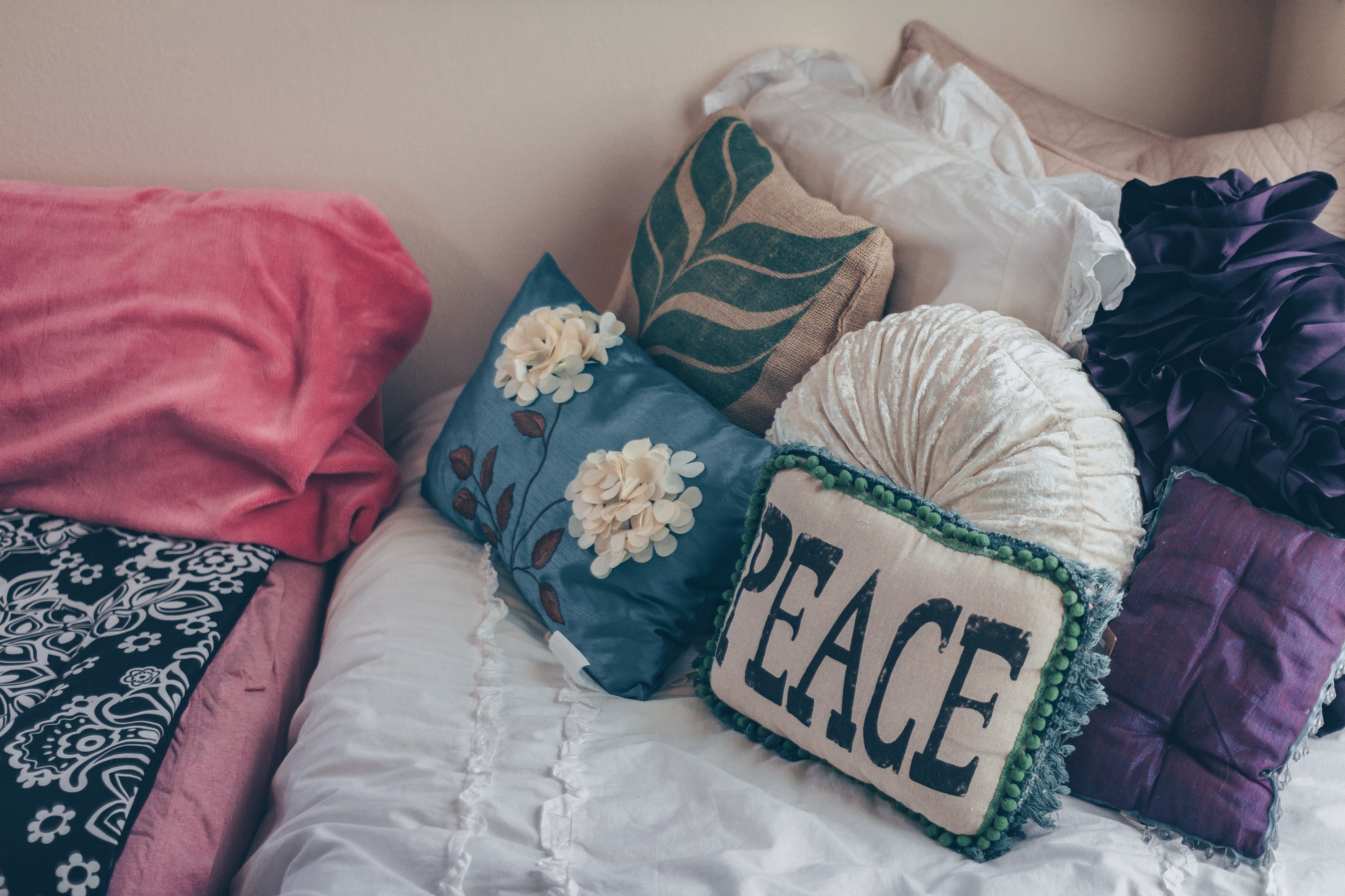 A két oldalon különböző stílusú, de színekben mégis összepasszoló párnák tökéletesek, ha nem tudunk sokáig megmaradni egy vonal mellett. A legjobb az egyik oldalon elegánsabb mintás, a másikon egyszínű vagy kicsit visszafogottabb változat. Kedvünkre cserélgethetjük, mikor milyen hangulatunk van.