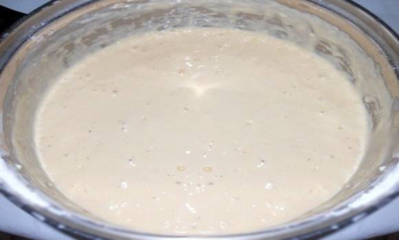 5.Amikor azt látod, hogy kis buborékok képződnek a massza felszínén, akkor foghatsz neki a sütéshez.