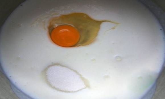 1.Öntsd a szobahőmérsékletű joghurtot egy edénybe, add hozzá a tojást, a sót, és a cukrot.