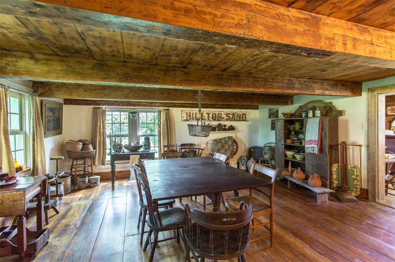 A farmház konyhája mindenféle bútorok keverékéből áll össze, és a régi korok konyháinak hangulatát idézi, amelyekben sosem helyezkedtek el egységes stílusú konyhaszekrények, mint ahogy a modern változatokban láthatjuk. Az 1931-es Chambers tűzhely tökéletesen illik a képbe. Ha a falburkoló panelek úgy néznek ki, mintha egy régi iskolaépület falaiból vették volna át őket, az azért van, mert pontosan onnan származnak.