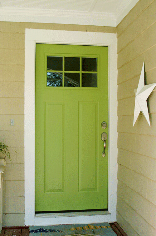 7. Feltűnő, világos mégis stílusosan egyszerű narancssárga bejárati ajtó