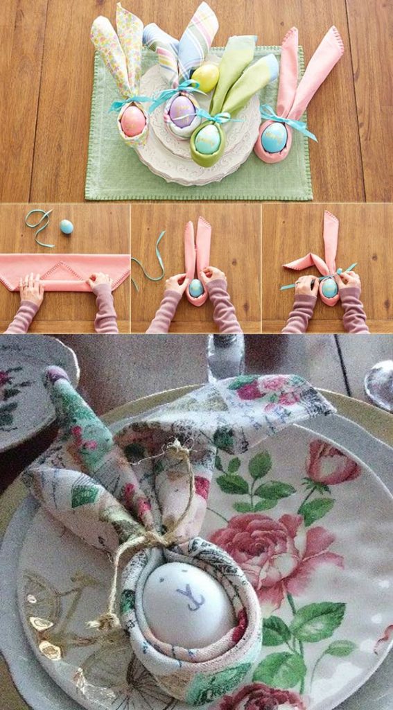 5.Fordítsd a szalvétákat húsvéti tojásokra, ez egy igazán különleges dísze lehet az ünnepi asztalnak.