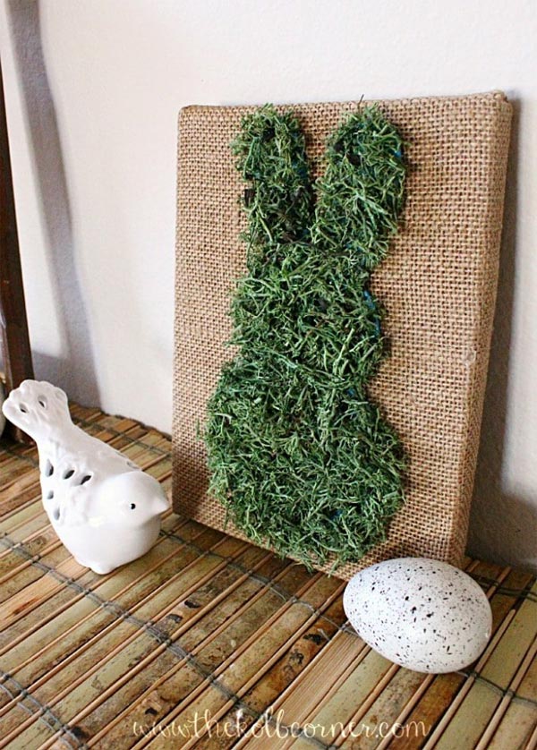 7.Adj egy szép, és fillérekől elkészíthető dekorációt a tavaszi otthonodhoz, ezzel a mohából és fűből készült nyuszival.