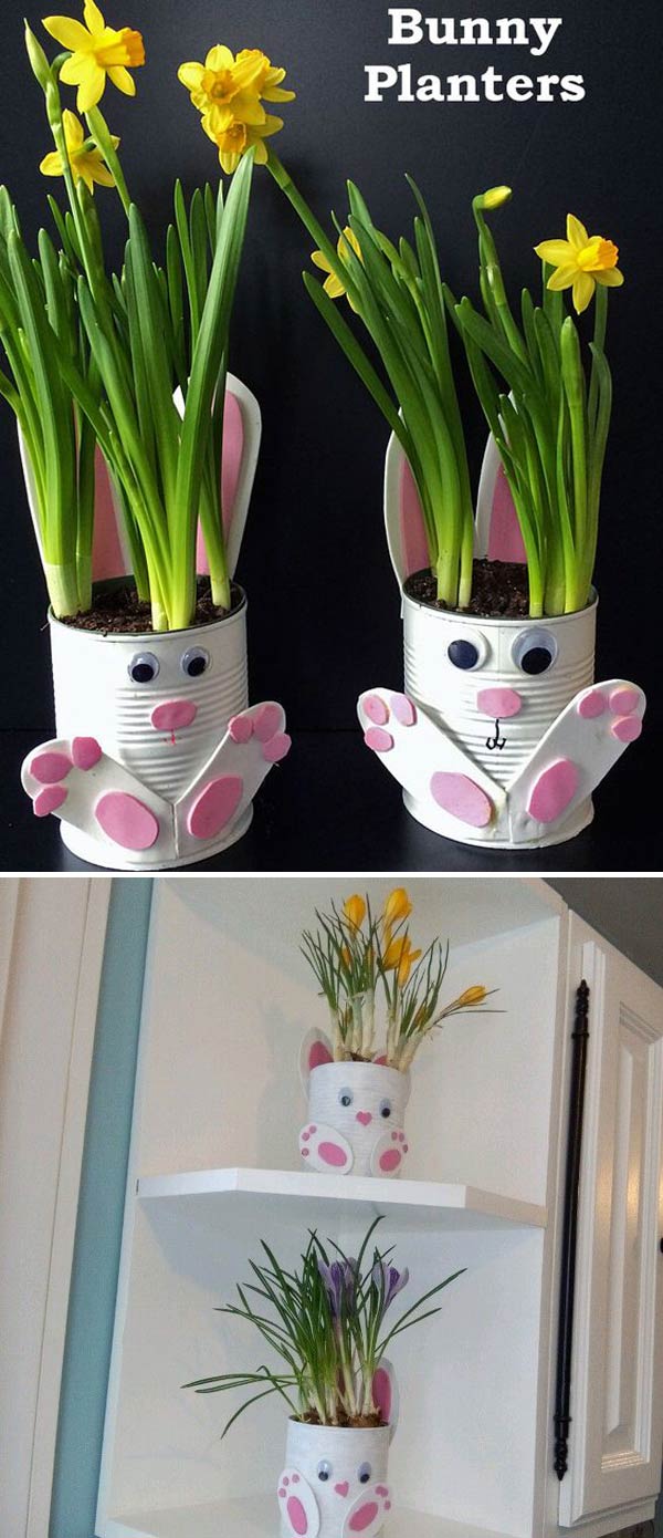 3.Készíts aranyos, nyuszis virágartókat konzervdobozokból! Egy igazán szuper ötlet, ami ráadásul pillanatok alatt, fillérekből elkészíthető!