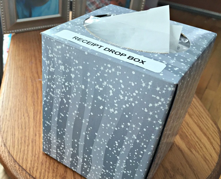 Ha szereted a bevásárlások után összegyűjteni a nyugtákat, akkor valószínű, hogy rengeteg ilyen kicsi papírdarab van az otthonodban, amiket nem egyszerű rendezetten tárolni. Annak megakadályozására, hogy ezek a kis dolgok rendetlenné tegyék az otthonodat, gyűjtsd őket egy régi zsebkendős kartondobozban.
