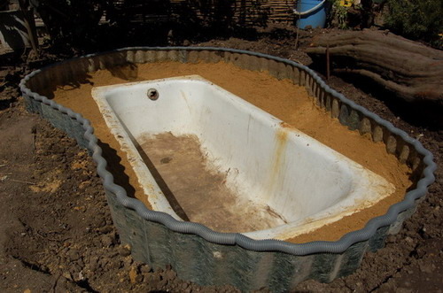 A szomszédom nagy munkába kezdett, fogta a régi fürdőkádat és kivitte a kertbe, majd elásta. Nem értettem, mit csinál, de mikor megláttam, mi lett belőle, a szavam is elállt. A fürdőkádból egy gyönyörű kerti tó lett! Mindenkit elbűvölt ez a látvány! Meg is kérdeztem tőle, hogyan csinálta és rájöttem, hogy ez nem is olyan nehéz dolog! Először a kádat be kell ásni a földbe, vigyázva rá, hogy a belső része üres maradjon. A tavacska oldala szinte bármiből készülhet, a szomszédom régi csövekkel vette körül.