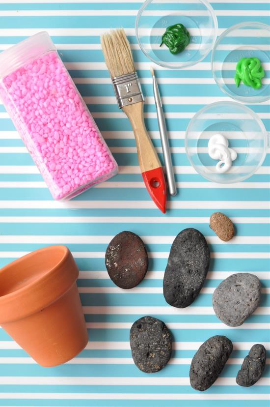 - lépés: Rendezd el a kaspóban a nagyobb kavicsokat is úgy, hogy egy kaktuszra hasonlítson.