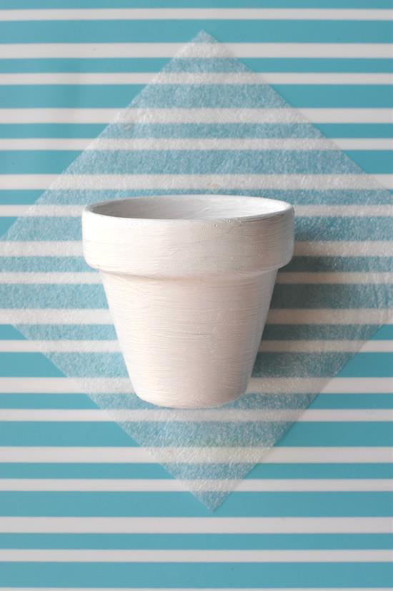 - lépés: Itt szintén a nagy ecsetre lesz szükség. Fesd le fehérre a kaspót, és itt is vastagon vidd fel a festéket, hogy ne kelljen két réteget alkalmazni. Várd meg, amíg megszárad.