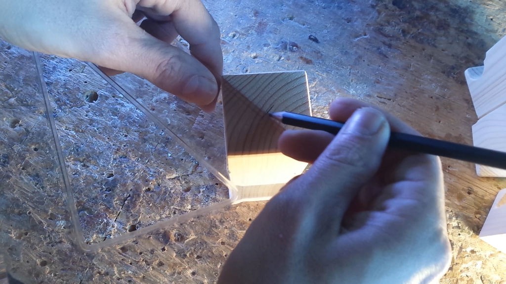 Mindegyik fadarab tetején lesz egy lyuk, amibe kényelmesen illeszkedik egy-egy mécsestartó. Fogj egy vonalzót és egy ceruzát és jelöld meg velük a fadarab közepét.