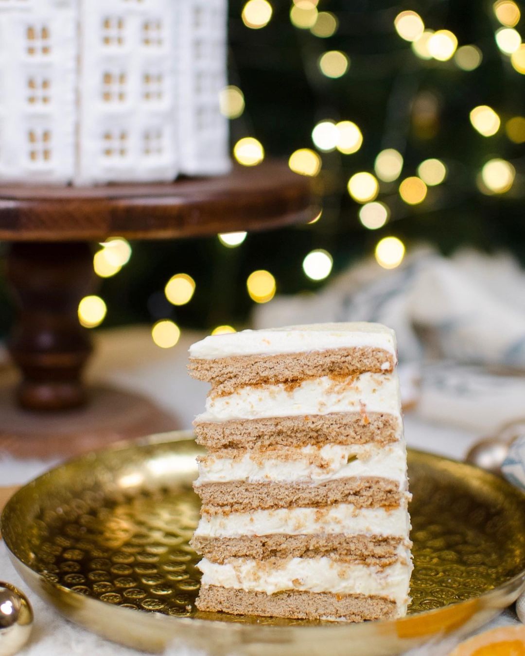 Mézeskalács lapok között egy narancsos-mézes fehércsokis krém, mézikkel díszítve: kell ennél több? Szerintünk nem! Pár nappal korábban érdemes elkészíteni, hogy átpuhuljanak a lapok, nagyon ütős lesz, hidd el!