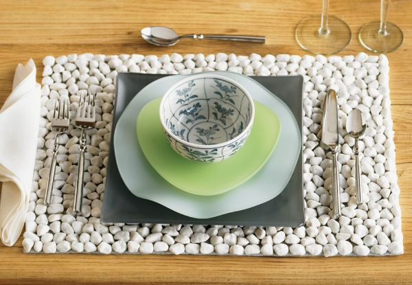 Dobd fel egy kicsit az asztalodat, és készítsd különleges alátétet kavicsokból! Arra figyelj, hogy többet kell készítened, nem csupán egyet!