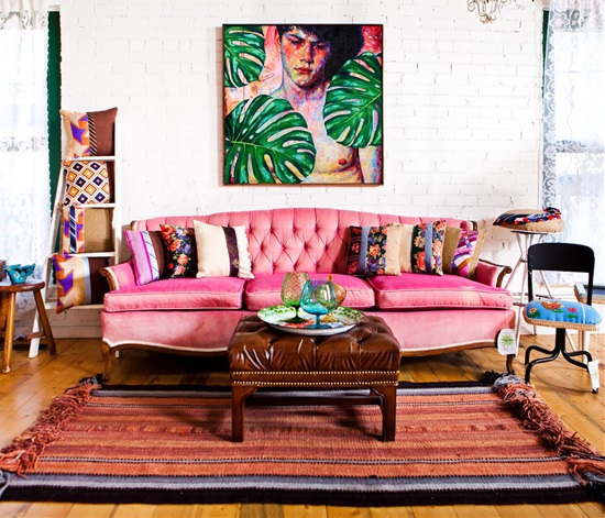Ennek az összeállításnak az olajfestmény és a rózsaszín kanapé alkotják a központi díszeit, de számos apró elem is segíti őket abban, hogy kitűnjenek a szoba látványvilágából.