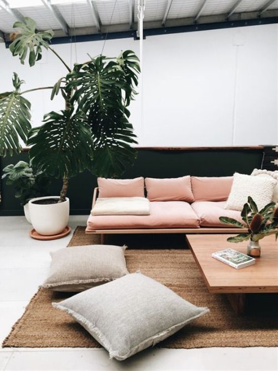 11. Rózsaszín kanapé óriási pálmával