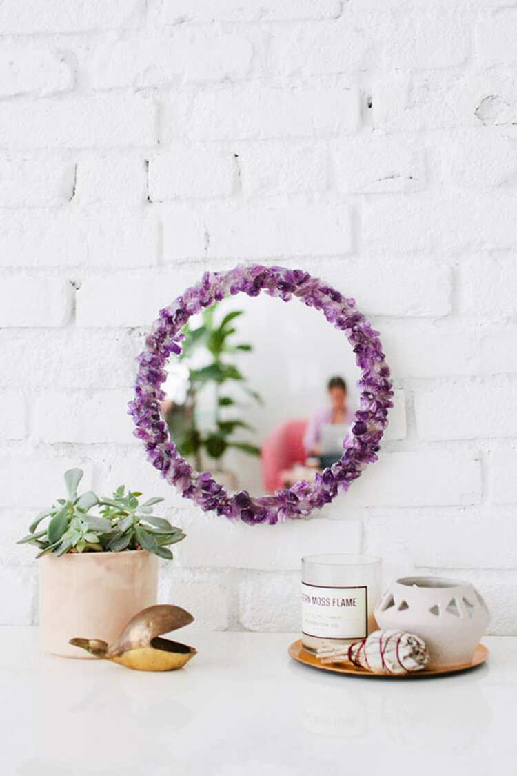 A tükrök fontos elemei a lakásnak, különösen akkor, ha egy kicsit otthonról van, szó, hiszen a tükrök segítségével optikailag nagyíthatjuk a teret. Ha van egy unalmas, egyszerű tükör az otthonodba, akkor dob fel néhány ametiszttel, és ez a tükör lesz majd a fókuszpont a helyiségben.