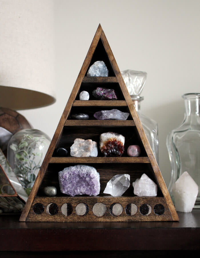 A kristályok már önmagukban remekül néznek ki, ennek köszönhetően úgy is tökéletesen mutatnak az otthonodban, ha nem csinál belőlük semmit. Ha azonban tényleg különleges dekorációt szeretnél, helyezd el őket egy ilyen fa piramison.