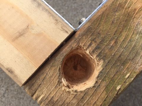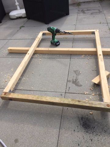 Hogy a csöveket a lécekbe helyezhesd, megfelelő méretű lyukakat kell fúrnod nekik. Minden sarokban szükséged lesz egy-egy lyukra, illetve szintén egy-egy lyukra a hosszabb lécek közepén.