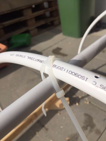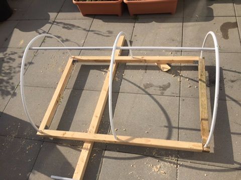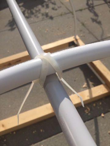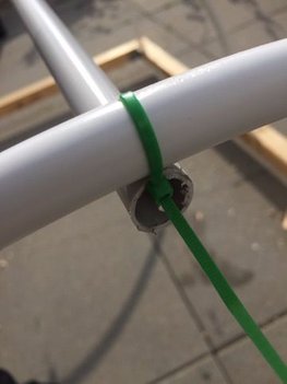 A rögzítéshez használj kábelkötegelőket és a kis lyukat, amit korábban az ívelt csövekbe fúrtál.