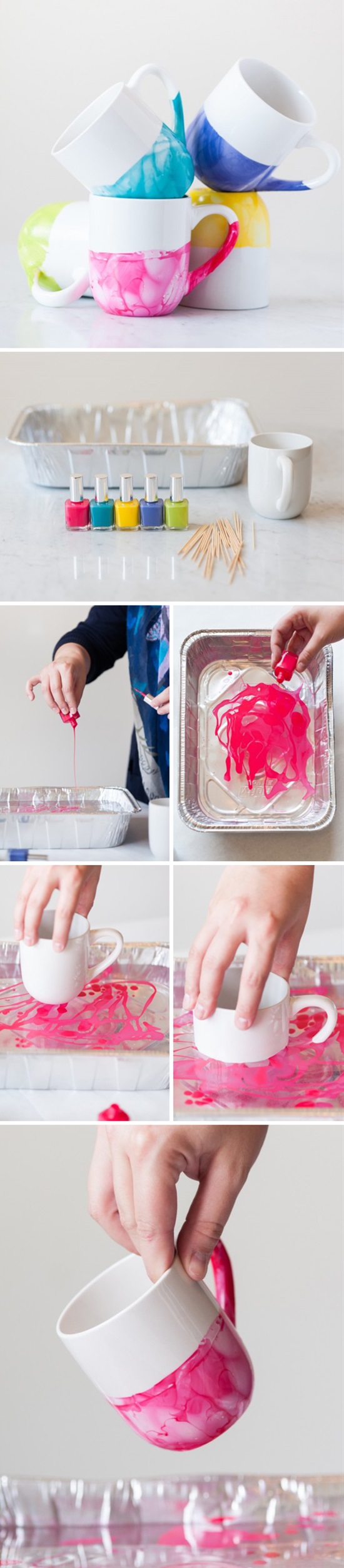 Biztosan neked is van néhány unalmas, fehér bögre az otthonodban. Ha szeretnéd őket egy kicsit feldobni, akkor itt az idő, hogy a körömlakkjaidat hívd segítségül!
