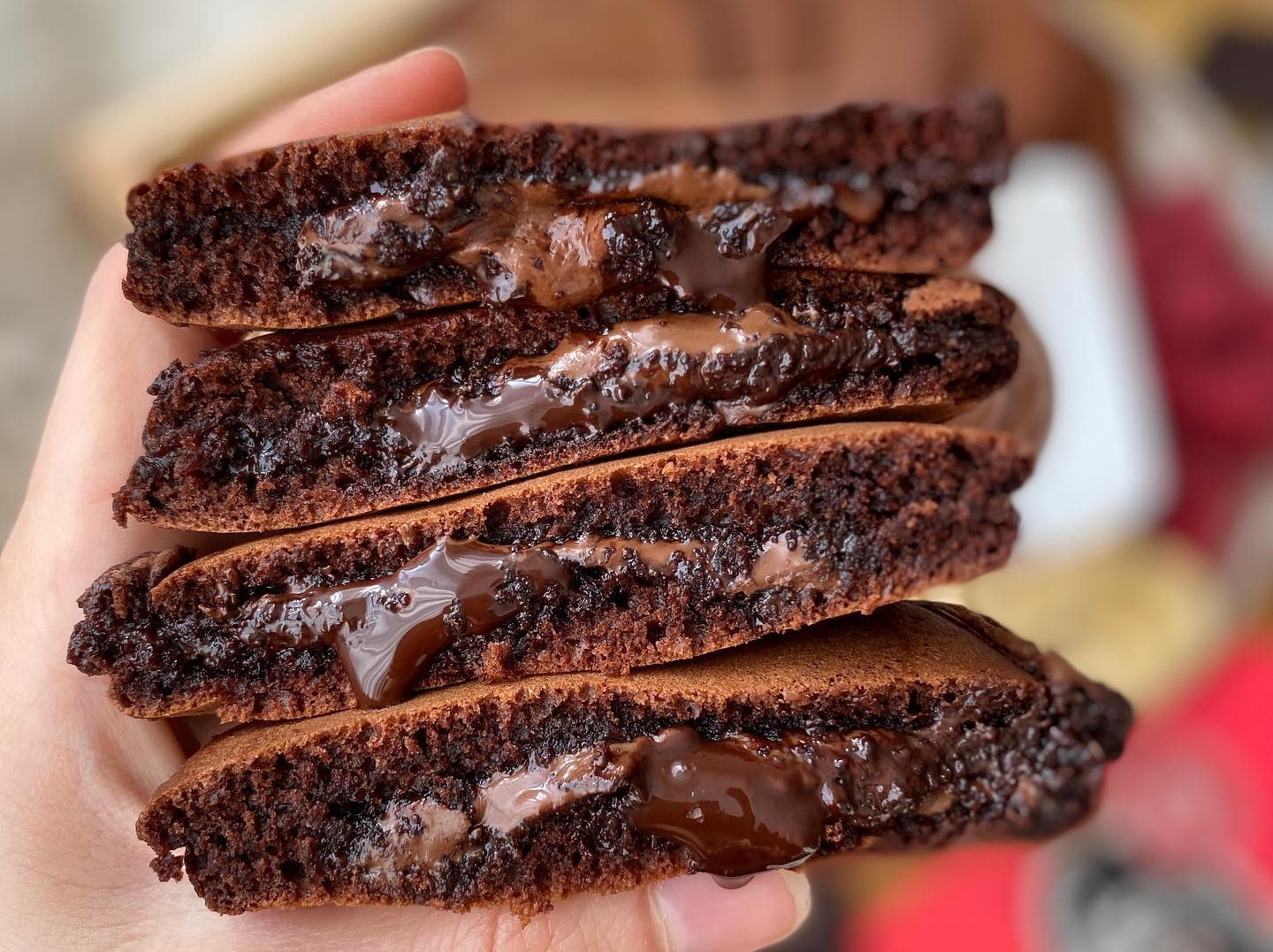 1 ek. nutellát sütőpapírra kikenünk korongnak, és betesszük a fagyasztóba. Palacsintához a száraz hozzávalókat eldolgozzuk, tejjel fokozatosan csomómentesre keverjük. Hozzáadjuk a vajat és a tojást, végén pedig lazítjuk a felvert fehérjével. Enyhén olajos/vajas közepes (nem túl forró) serpenyőbe 2 ek. kupacot halmoztam, ezt lefedtem. Amikor elkezd a buborék látszódni kivesszük a nutellát a fagyasztóból, lehúzzuk a papírról, közepére helyezzük és jöhet a csoki. Ezt kb. 2ek palacsintatésztával lefedjük, fedő alatt hagyjuk kicsit, és aztán megfordítjuk. Ennyi!