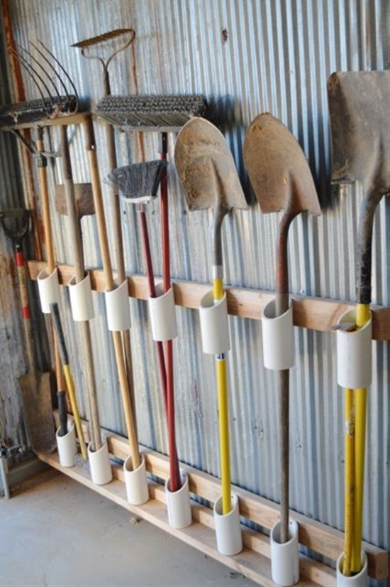 Zseniális és egyszerű megoldás a kerti kellékek tárolására és rendezésére.