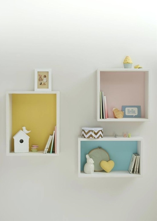 Ha nem szeretnél átfesteni egy egész fehér falat, akkor dobd fel néhány hasznos, pasztellszínű polccal! Csak fesd ki az aljukat kedvenc pasztellszínedre, és már mehetnek is a falra!