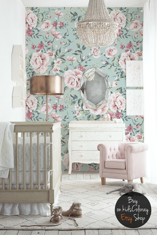 A virágos tapéták kezdenek újra divatba jönni, különösen az ilyen izgalmas, buja fajták. Ha sikerül találnod egyet finom pasztellszínekkel, akkor máris megvan a tökéletes faltakaró a babaszobába.