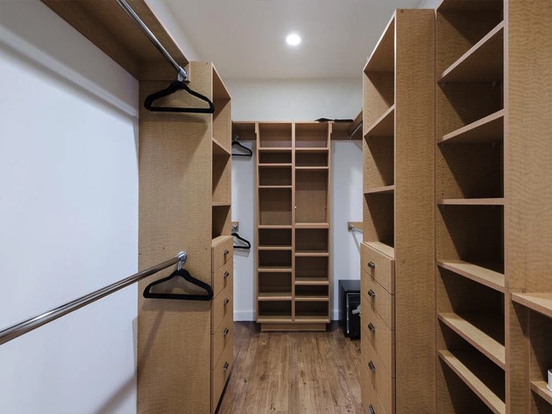 A méretes fő öltözőszoba temérdek helyet kínál a ruhák számára.