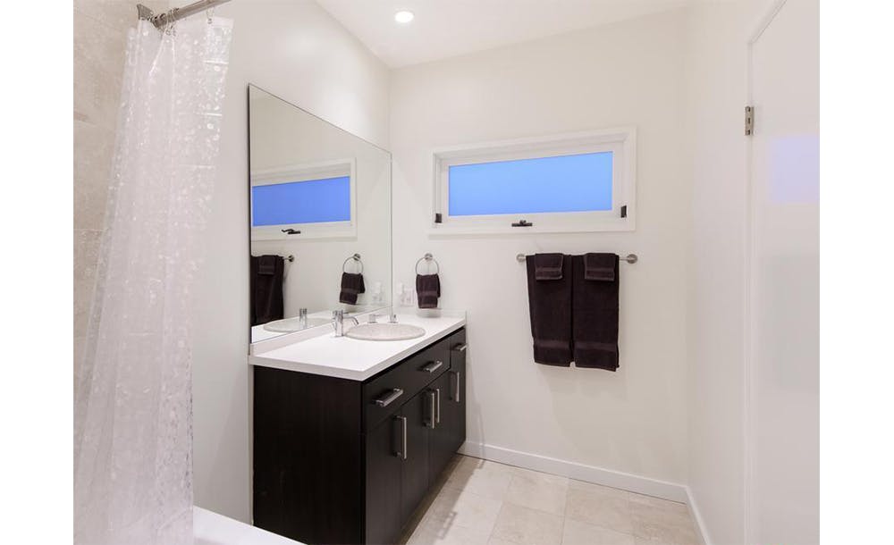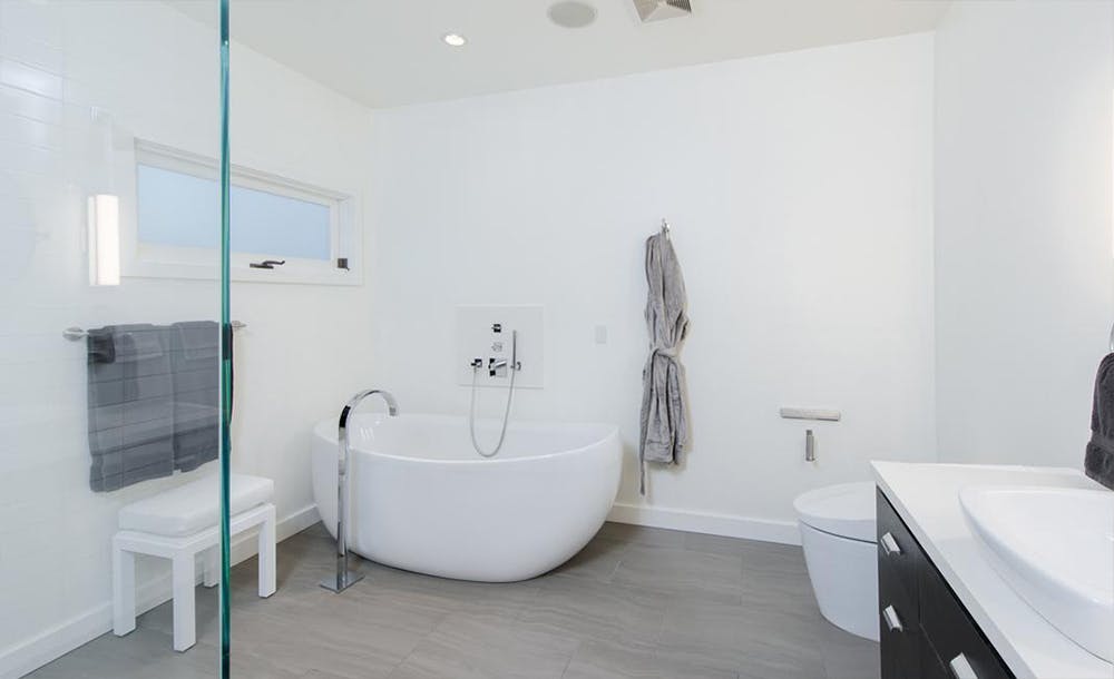 A frissen felújított fő fürdőszobában egy különálló kádat találunk.
