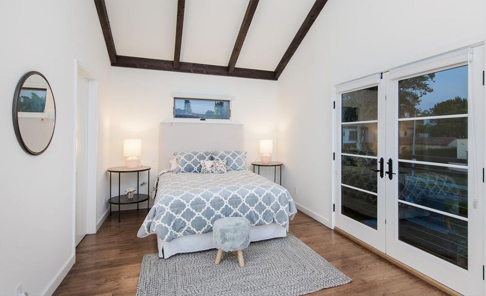 A kétszintes különálló vendégház földszintjén egy kisebb konyha, az emeleten pedig egy fő hálószoba és másfél fürdőszoba található.