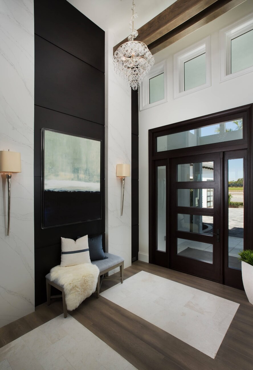 Az előszoba az a helyiség, amit minden hozzátok érkező vendég biztos, hogy látni fog. A legtöbb előszobából több helyiség is nyílik, így a szomszédos helyiségek színei tökéletesen egyensúlyba hozhatók sötét színekkel. Ha nem áll készen arra, hogy egy előszobában teljesen sötét színpalettát használj, egyetlen fal vagy akár a mennyezeted jó felületeket biztosít a mélyebb színek számára.