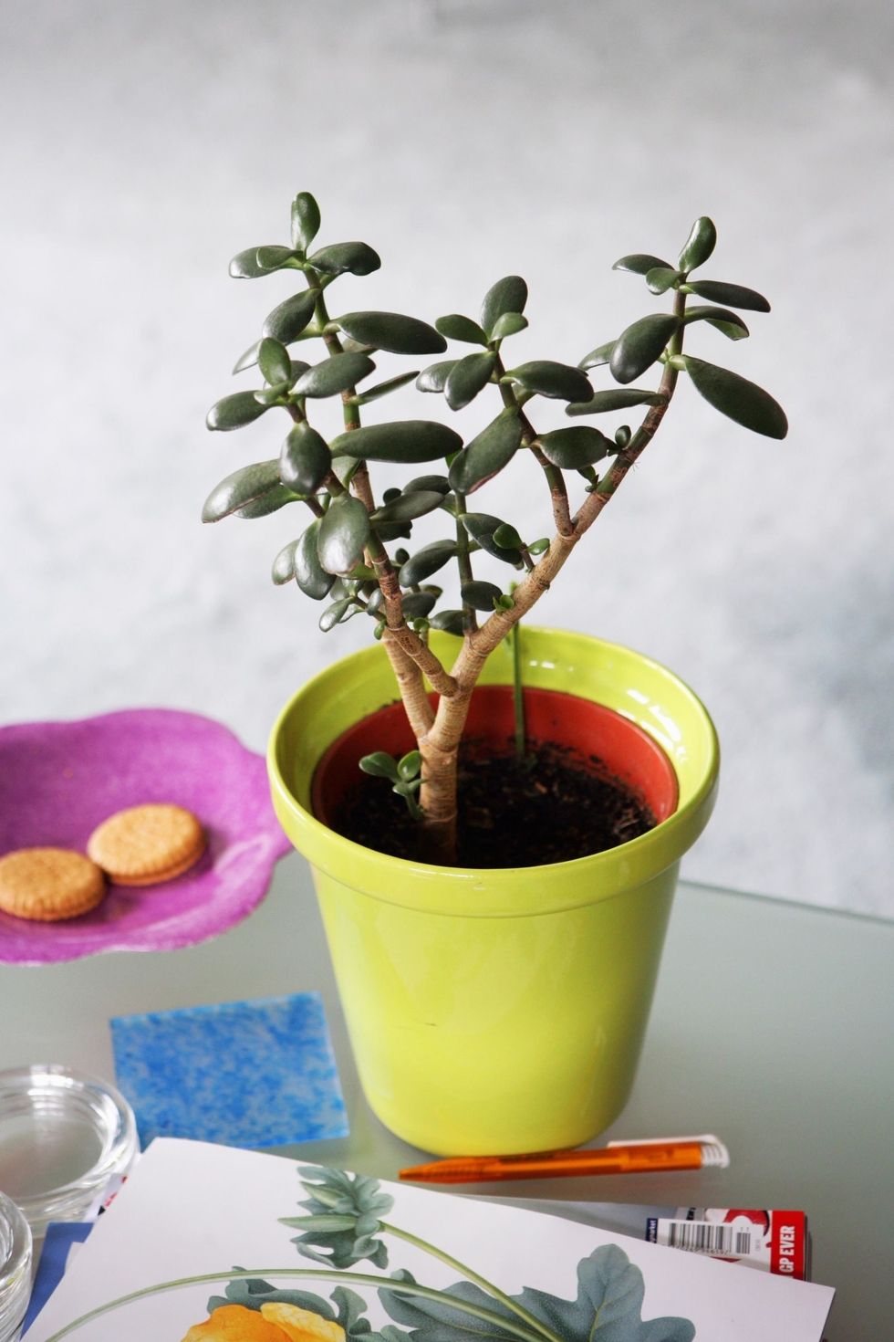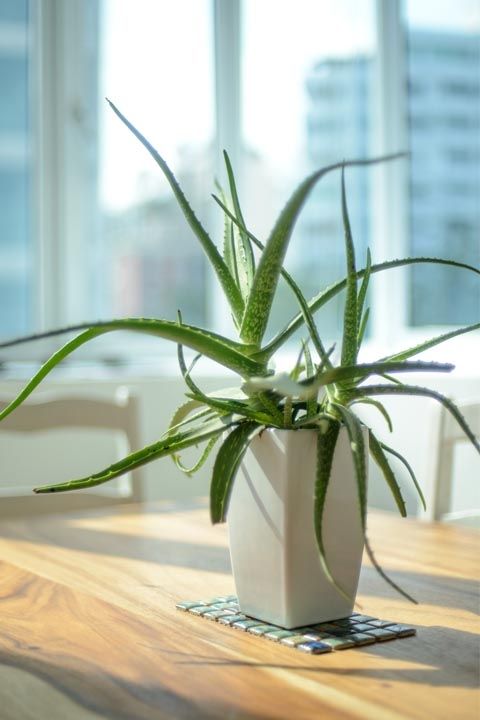 Az aloé nagyon szereti a napfényt és csak heti egy öntözést igényel, várd meg tehát, míg két öntözés között a talaj teljesen kiszárad. Helyezd a növényt egy magas cserépbe ami nem engedi, hogy levelei az asztalhoz érjenek.