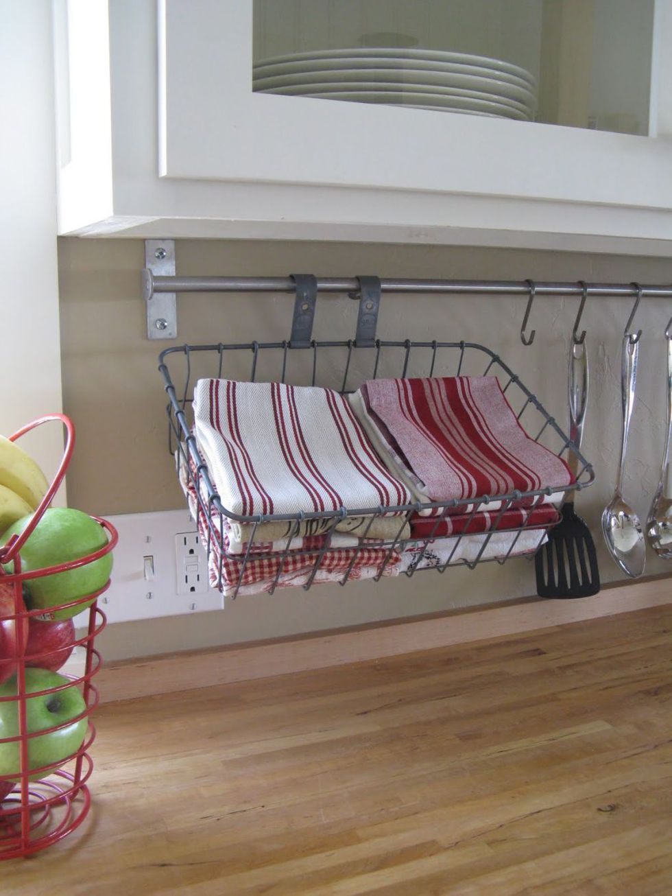 A konyhában minden plusz tárolóegység jól jön, különösen akkor, ha egy kicsit helyiségről van szó. Remek megoldás lehet a konyhasziget oldalára felszerelni egy törölközőtartót, ezek alkalmas lehet növények, különböző konyhai eszközök tárolására, de akár egy kisebb kosarat is tehetsz rá, ahova elhelyezheted a gyümölcsöket.