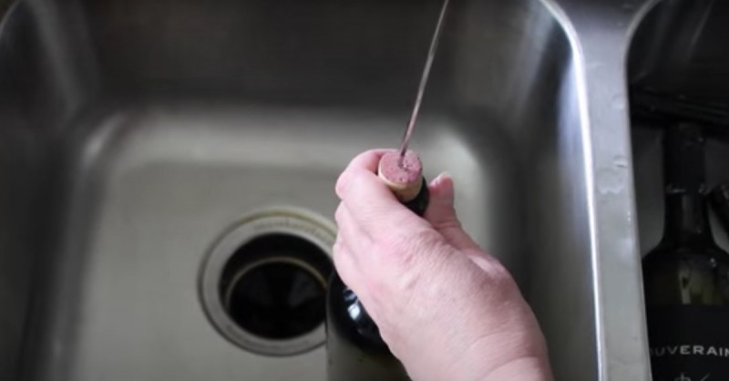 Szúrj egy lyukat a parafadugóba, töltsd meg a palackot vízzel és nyomd bele a dugót.