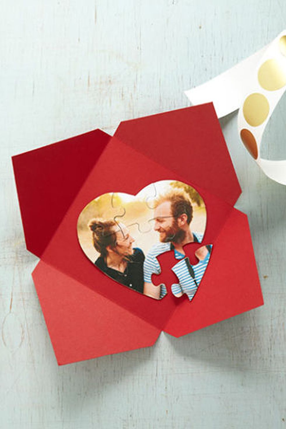 Csupán néhány kirakós-darabra, egy kinyomtatott képre, egy ceruzára, és egy ollóra lesz szükséged, hogy elkészítsd párod kedvenc szerelmes ajándékát.