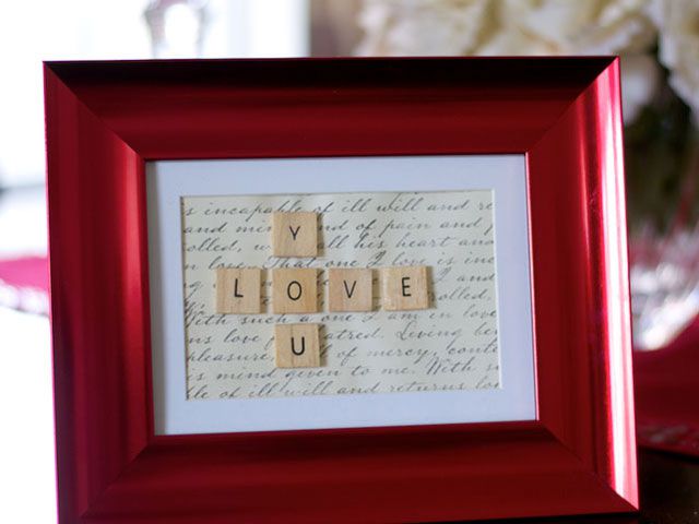 Egy csinos képkeret, valamilyen könnyed, romantikus szöveg a háttérbe, és egy őszinte üzenet, fadarabokból kirakva. Minden polcon jól mutat!