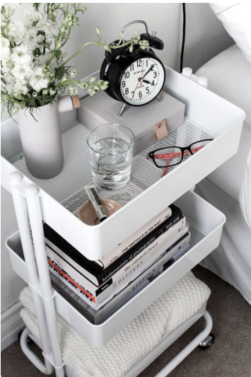 Gondoltad volna, hogy a zsúrkocsi a hálószobában ilyen remek és fontos szerepet tölthet be? Egy ilyen szellős, kellemes megoldás a kisebb hálószobákba is remek lehet. A három szintnek köszönhetően biztos, hogy minden kis kiegészítőd elfér majd benne.